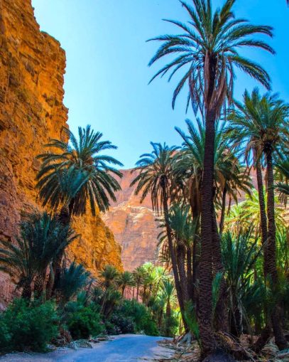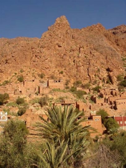 There are 26 Berber villages in the Ameln valley, spread out in the green oasis at the base of the chain of hard sandstone cliffs.